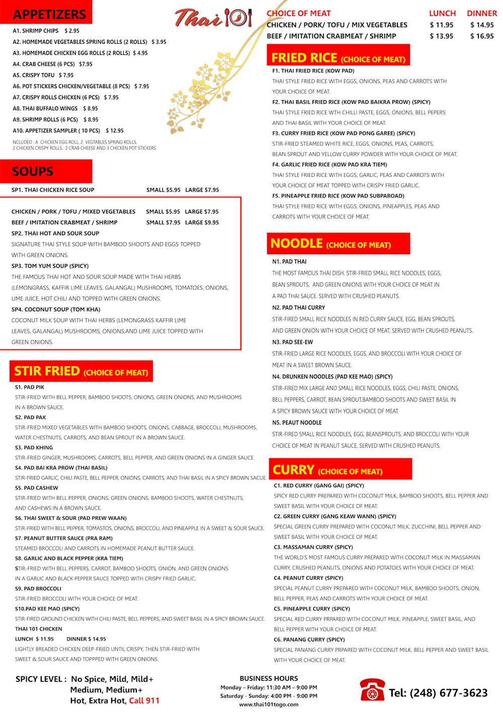 You’ll find a diverse selection of dishes on our menu, all prepared with fresh ingredients and a touch of passion. We’re excited to introduce you to a symphony of Thai flavors in every dish.
